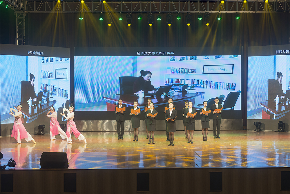 為表彰干事創(chuàng)業(yè)的先進,鼓舞團結奮發(fā)的斗志,匯聚高質(zhì)量發(fā)展的強大向心力,2月8日下午,集團在揚州會議中心學術報告廳隆重組織召開2018年學先進·迎新春·匯報會。市國資委副主任夏心忠,集團領導班子,本部各部室全體人員,各全資及控股企業(yè)(含金融集團)、揚州會議中心領導班子,中層干部及員工代表,客戶代表共近900人參加大會。 在集團領導的關心指導下,集團各所屬單位及集團運營部、營銷部經(jīng)過半個多月的精心籌備和排練,呈現(xiàn)了一場高端、大氣、創(chuàng)新、唯美的企業(yè)文藝秀。本次文藝匯演有幾大創(chuàng)新亮點,包括首次在會議中心學術報告廳匯演,主持人首次有8位俊男靚女擔任,集團領導首次用詩歌朗誦形式致辭,集團企業(yè)歌曲《揚州廚娘》首次發(fā)布,團餐項目首次由各家單位聯(lián)袂演繹表達,青年員工集體感情婚姻主題首次上臺展示等等,深受觀眾好評。
